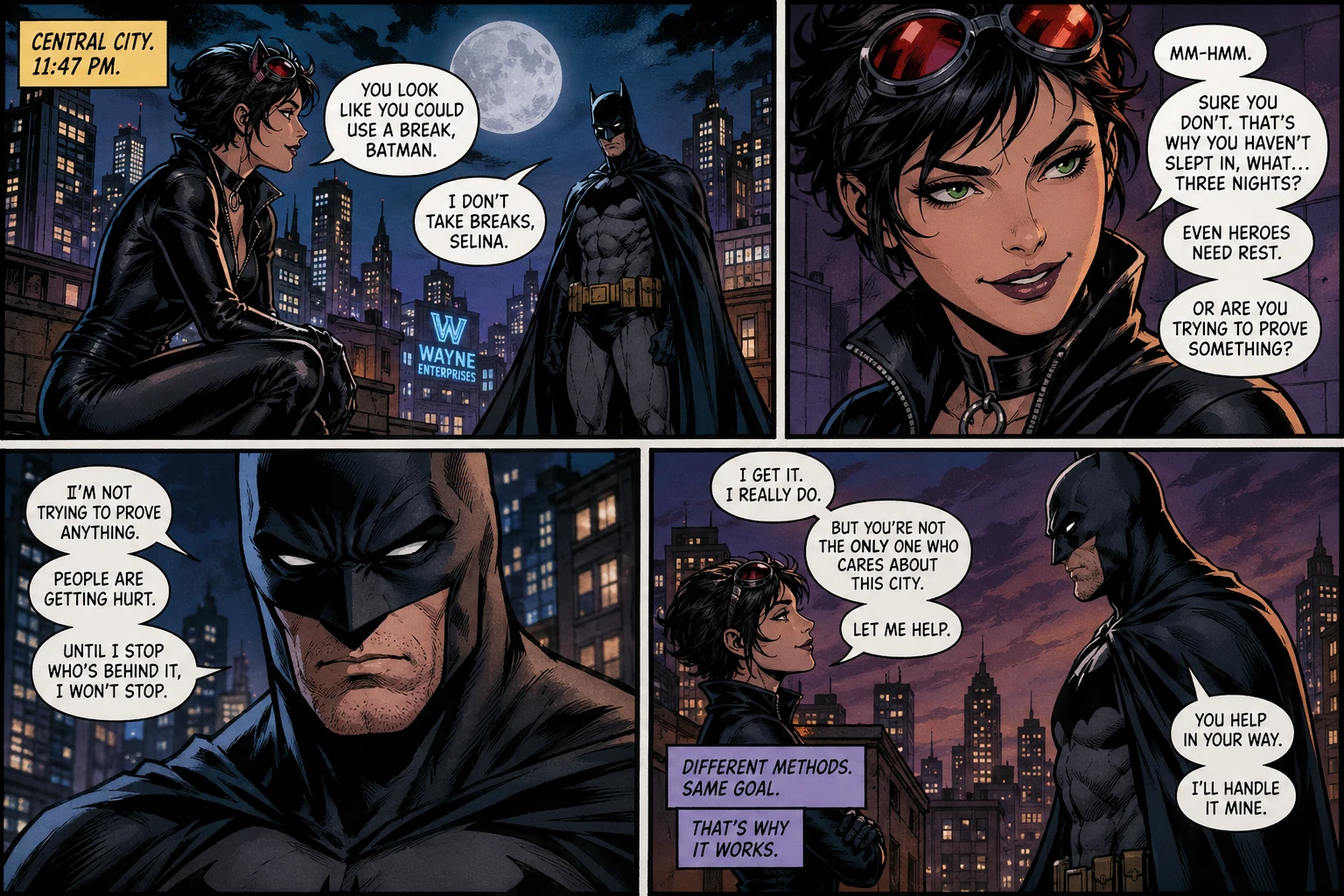Bold ink, Ben-Day style shading, and speech bubble layout